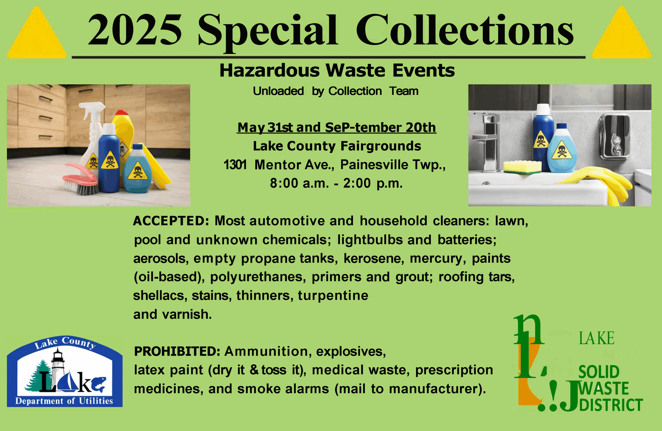 Lake County General Health District serves as an Ohio Environmental Protection Agency (EPA)-approved enforcement authority charged with regulating solid waste activities in Lake County.  Our regulation includes the oversight of the collection, storage, transportation, and final disposal of all solid waste, except hazardous waste. Further information of the various types of waste and more specific functions of the Health District are detailed below.